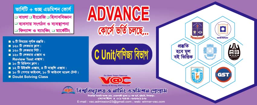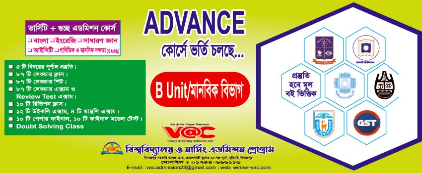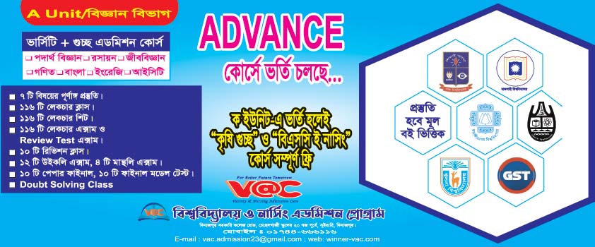 এখন সিদ্ধান্ত তোমার। কারণ ভর্তি পরীক্ষায় সারা রাত-দিন পড়েও অনেকে চান্স পায় না শুধুমাত্র পর্যাপ্ত গাইডলাইন এবং কি পড়তে হবে, কি বাদ দিতে হবে এগুলো না জানার কারণে। তাই নিজেকে শতভাগ প্রস্তুত করতে এখনি তুমি ভর্তি হয়ে যাও V@C (Varsity Admission Care) এর অভিজ্ঞ মেন্টরদের নিবিড় পরিচর্যায় পরিচালিত আমাদের স্পেশাল ‘A ’ Unit /বিজ্ঞান বিভাগ+ভার্সিটি+গুচ্ছ এডমিশন প্রোগ্রামে।